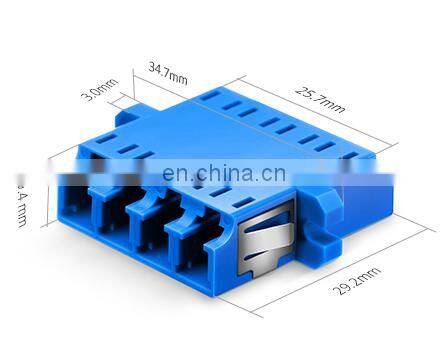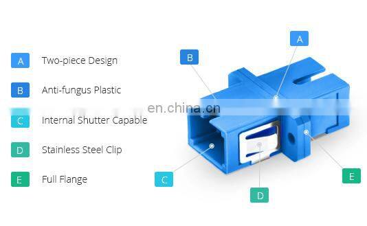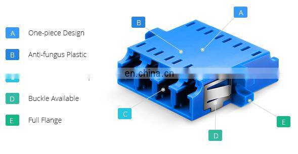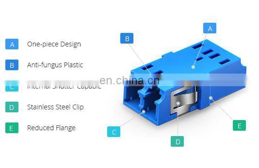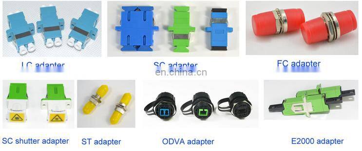 Fiber optic adapter produce diversfied types of adapters including FC,SC,ST,LC,MU,MTRJ,E2000,DIN,D4,MPO,FC-SC,FC-ST,SC-ST,LC-FC,LC-SC etc.Integrative construction of connector,good and