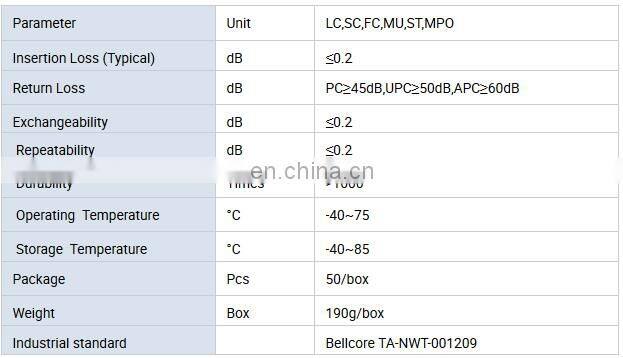 6. Insertion Loss≤ 0.2dB, Return Loss≥ 45dB (pc), ≥ 60dB (apc)