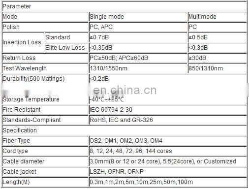 8 12 24 Core MPO To LC Connector Patch Cord Patch Panel Fiber Optic Cable Assembly