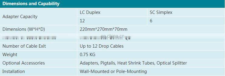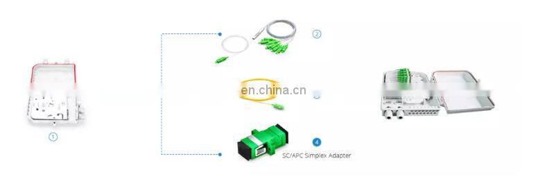 FTTH fiber optical terminal box, outdoor fiber optic termination box is used in wiring connection between optical cable and optical communication equipment, through adapter in distribution box, optical fiber jumper leads optical signal, realize optical wiring function, and can meet the optical splitter placed to achieve spectral function.