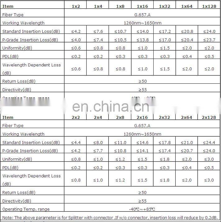 PLC (Planar Lightwave Circuit) splitter is based on planar lightwave circuit technology and provides a low cost light distribution solution with small form factor and high reliability.We provides a various of 1×N and 2×N PLC splitters, including 1×2 to 1×64 and 2×2 to 2×64 Mini Plug-in type fiber PLC splitters. They are all with superior optical performance, high stability and high reliability to meet various application requirements.
