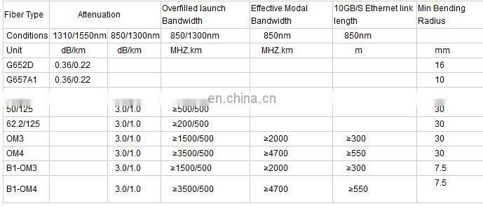 3.The tensile and crush of the cable are accordance with the values in the table when the strength member of FRP