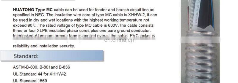 UL Listed xlpe insulation MC wire and cable