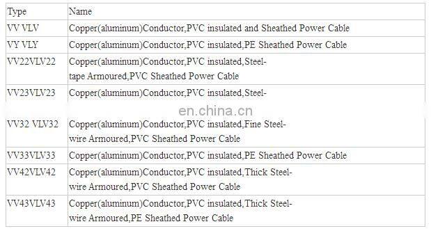VLV VLV22 VLV32 0.6/1KV Aluminum Cores PVC Insulation PVC Sheath Electrical power Cable