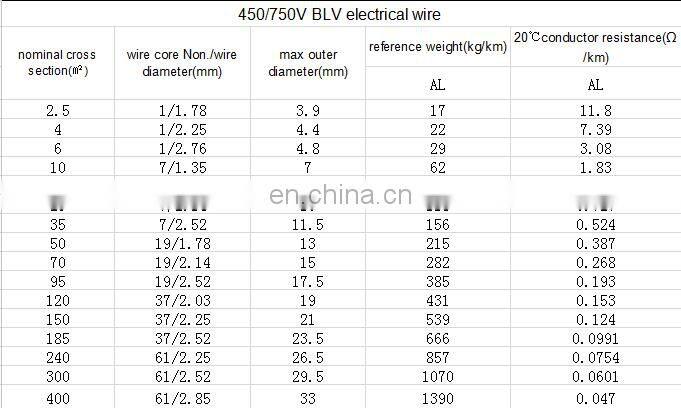 Factory price 450/750V pvc insulated single core aluminum electrical wire made in China