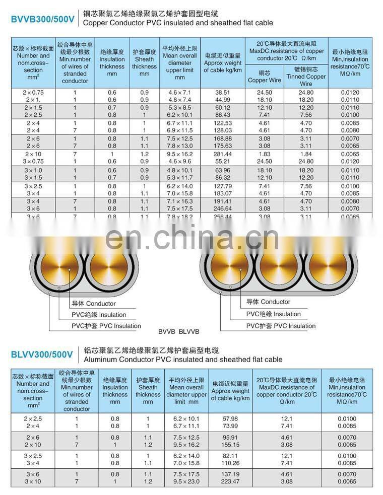 300/500V Low Voltage Aluminum Conductor Pvc Insulated Electrical Wire Flat Cable