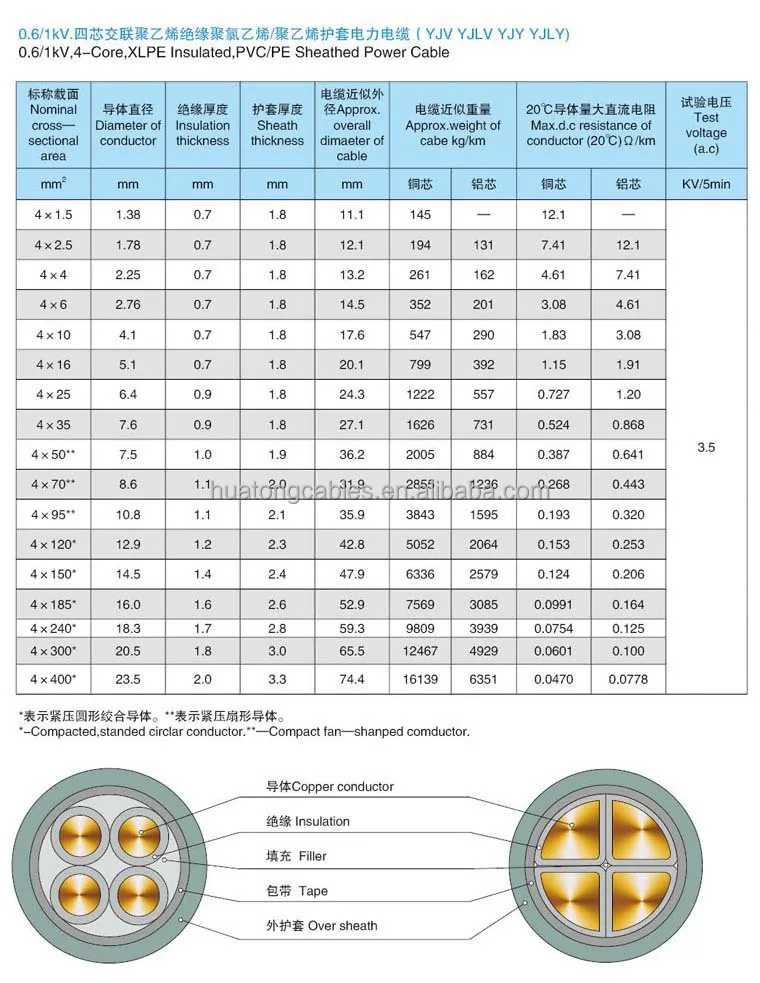Insulation: Cross-linked polyethylene( XLPE or PVC)
