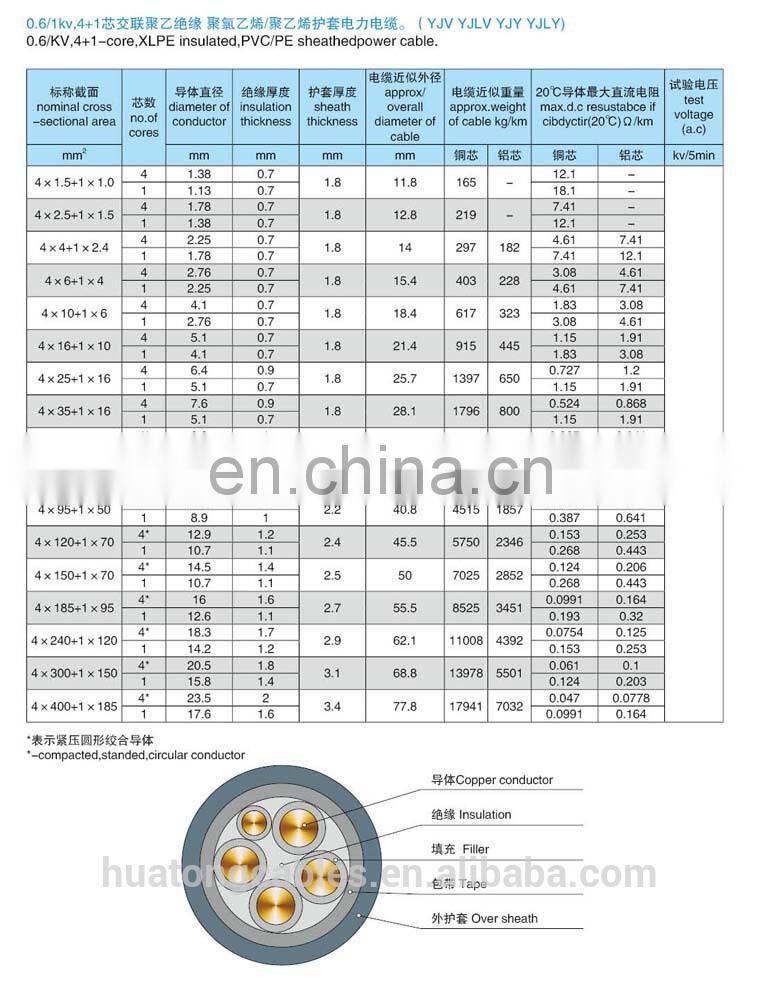 Insulation: Cross-linked polyethylene( XLPE or PVC)