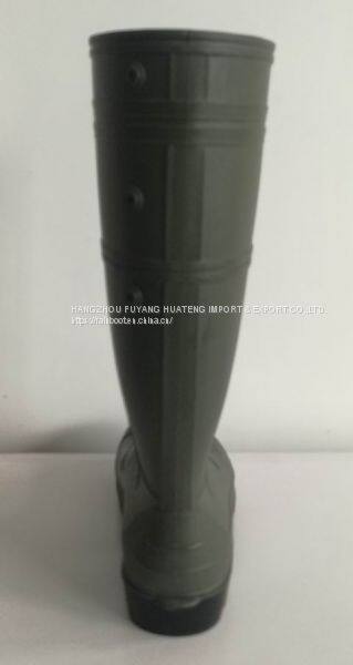 We use polyvinyl chloride (referred to as PVC) to manufacture these products and the process is simple. They are manufactured by the mold of injection only once time, so generally the MOQ is larger, but the price is lower and it has good waterproof capability. The features are: the flexibility can be changed according to the temperature. They have strong wearability; it is comfortable to wear and they are 100% waterproof. The patterns on the surface and the colors of the boots can be changed according to your requirements, but the cost to change the pattern is very high because the patterns you see is the pattern of lining in the boots. Besides, we just can change the surface of boots to be bright and matt. If you need to change the style and surface of the boots, we should modify the mold and the cost is very high, so generally the styles of PVC rain boots are very single. These products are widely used in various fields, such as agriculture, family,fishing, construction, mining, etc. It is an ideal and practical protective product.