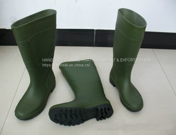We use polyvinyl chloride (referred to as PVC) to manufacture these products and the process is simple. They are manufactured by the mold of injection only once time, so generally the MOQ is larger, but the price is lower and it has good waterproof capability. The features are: the flexibility can be changed according to the temperature. They have strong wearability; it is comfortable to wear and they are 100% waterproof. The patterns on the surface and the colors of the boots can be changed according to your requirements, but the cost to change the pattern is very high because the patterns you see is the pattern of lining in the boots. Besides, we just can change the surface of boots to be bright and matt. If you need to change the style and surface of the boots, we should modify the mold and the cost is very high, so generally the styles of PVC rain boots are very single. These products are widely used in various fields, such as agriculture, family,fishing, construction, mining, etc. It is an ideal and practical protective product.