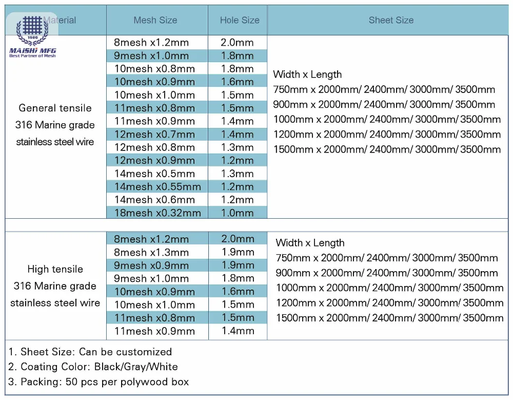 It is high tensile AISI316 stainless steel wire, tolerance(+/-0.01mm), tensile strength is more than 900Mpa (900N). The holes are square and the wires are very strong (not sliding), screen surface is flattened after we weave the wires to mesh screen.