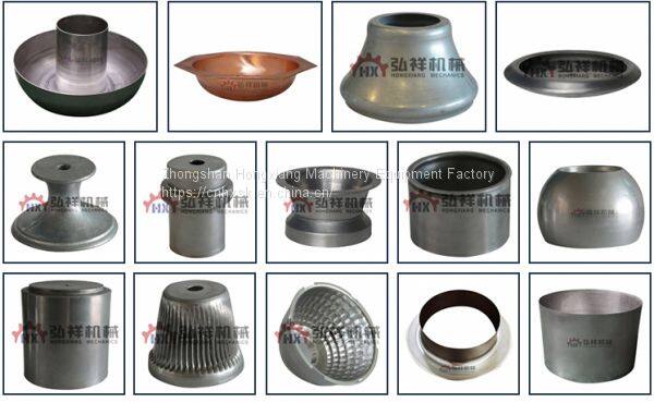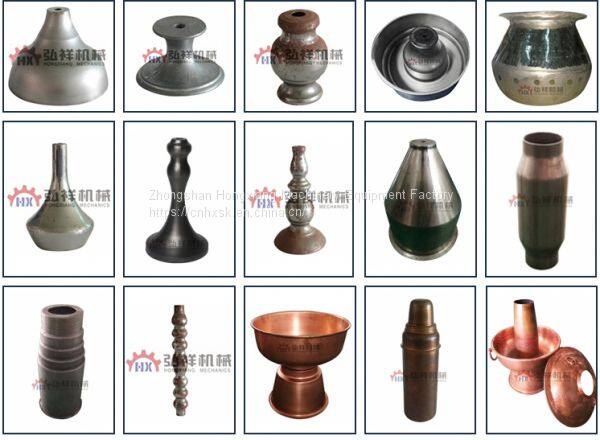 Our spinning equipment suitable for iron, aluminum, copper and other metal spinning parts and tube processing, widely used in lighting, handicrafts, furniture, automotive and other industries. The tool broad and flexible, and has the advantages of high production efficiency, can be completed a model (such as a barrel type, cone type, parabolic, horn, bullet type, etc.) series of products and multiple mode (such as a vase, gourd type, ball type) of batch production.