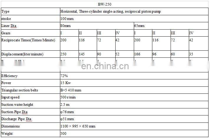 BW160/10 horizontal triplex reciprocating acting Mud pump
