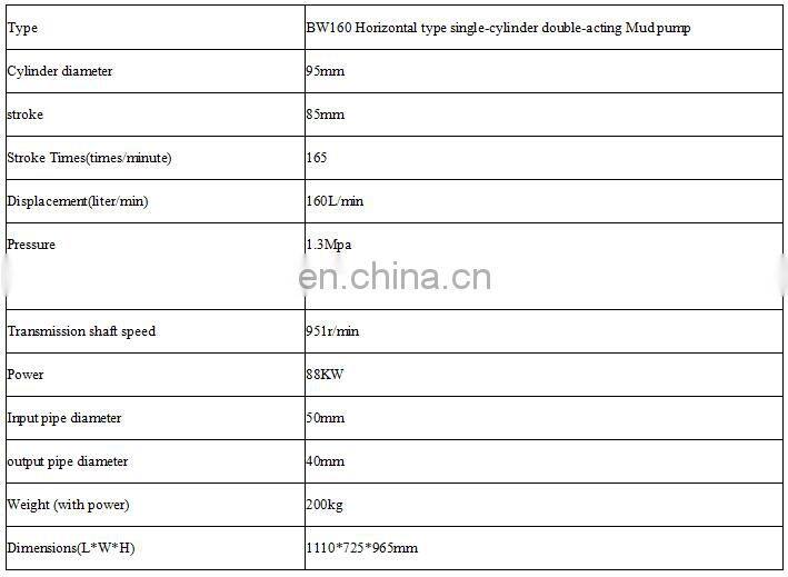 BW160 Horizontal type single-cylinder double-acting Mud pump