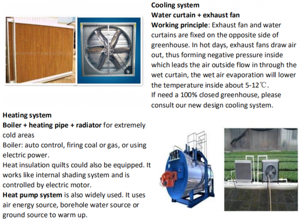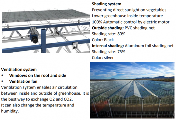 Auto control: shading system, cooling system, heating system, ventilation system and irrigation system.