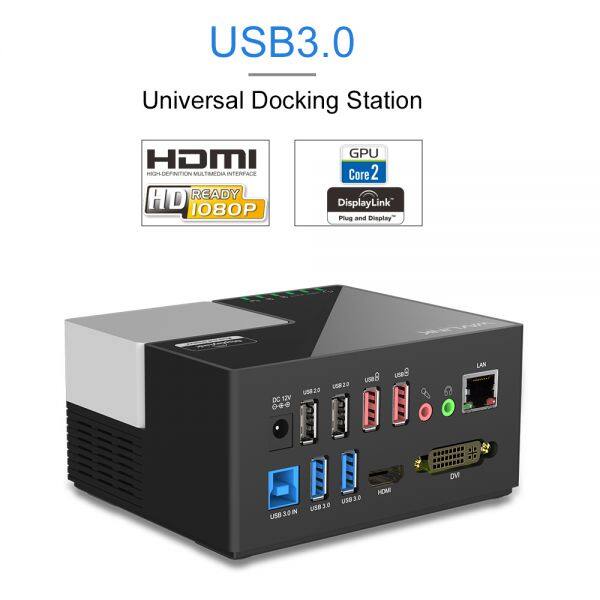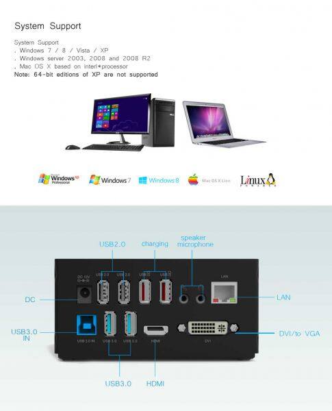1.Dock provides Super Speed USB 3.0 (5 G bps) link from PC to Video, Ethernet, Micro Phone In/Earphone, USB 3.0 ports 2 unit , USB 2.0 ports 2 uni and in addition of two USB charging red color ports