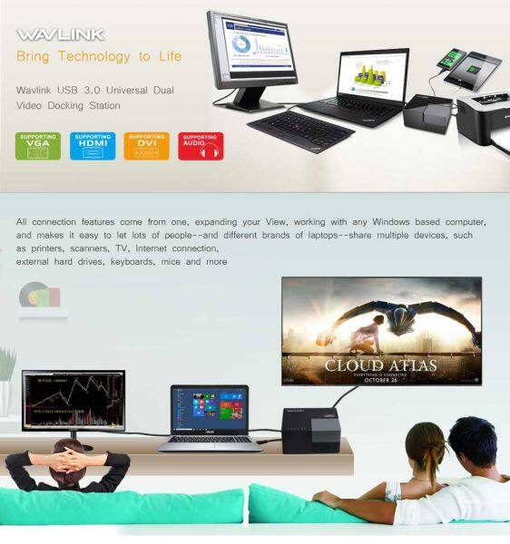 WAVLINK USB 3.0 Universal Dual Display Docking Station Support HDMI/DVI/VGAUS$ 46 - 55MOQ: 200 Pieces