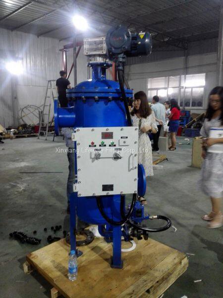 The cleaning brush inside the filter mesh is drove by the motor, and the impurities stopped by the filter mesh will be discharged from the drain valve. When cleaning, the system does not cut off; the whole operation process of the filter is controlled by an intelligent control box which is equipped with the filter.