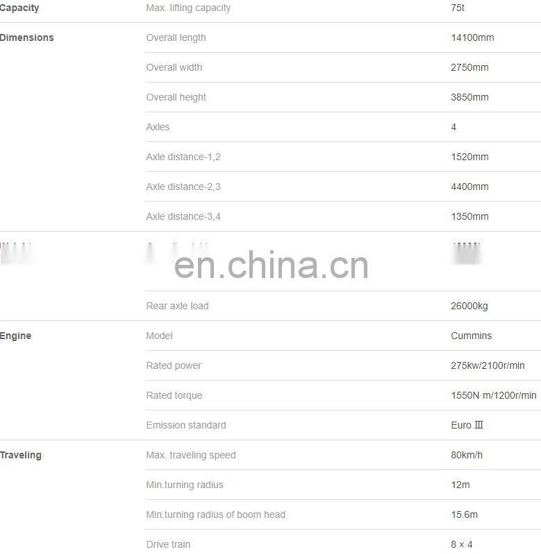 | Rated Lifting Moment | 1254.4kNm | Rated Loading Capacity | 75t | |