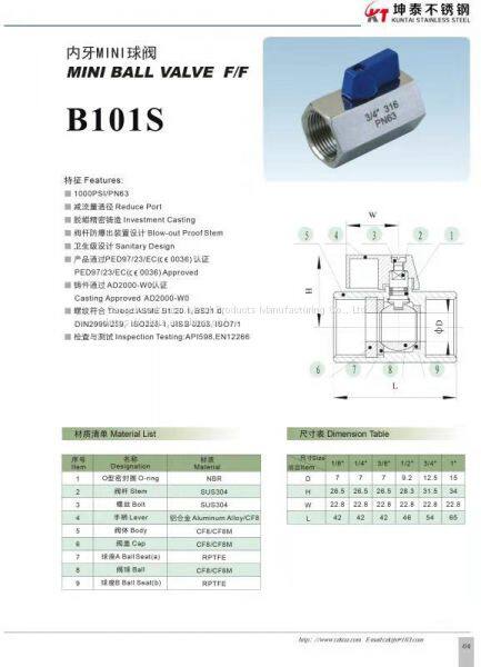 Name: Stainless steel mini ball valve