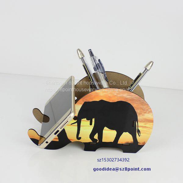 3D Elephant Creative Shape MDF Sublimation Pen Holder Cellphone Stands