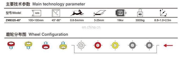 ZM9325-45°glass straight line multilevel edging machine can grind the straight line and multilevel corner angle on flat glass of different size and thickness. It applies to crude & fine grinding, polishing complete in one procession. Motor assembles and adjusts in a large range. It has many assembled forms to suit different demand of grinding and different glass products. Use the stepless regulator to adjust the process speed, easy to operate equipment. It is a necessary tool for glass processing.