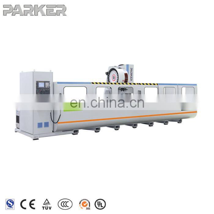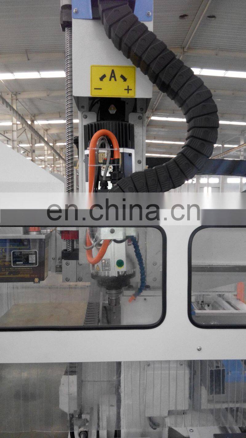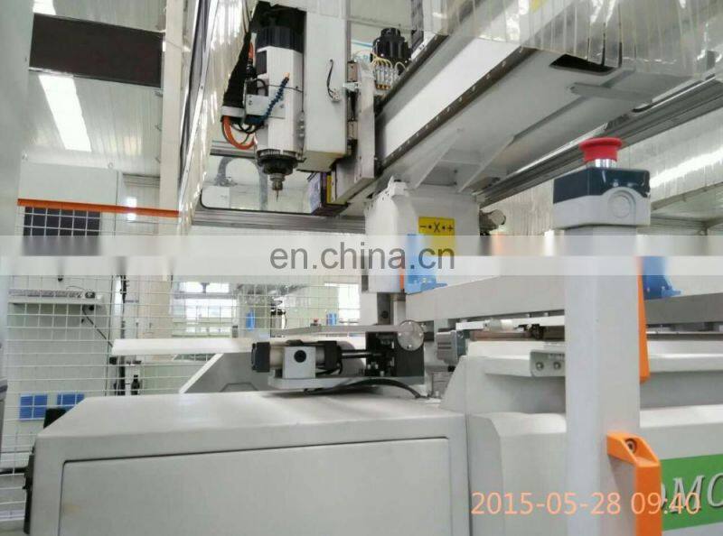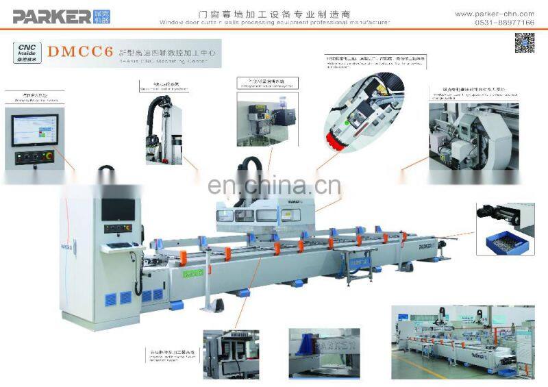 DMCC6 high speed four axis CNC machining center with 4 continuous controlled axes (X, Y, Z, A) and can be interpolated. The standard is equipped with a semi closed protective cover. The equipment is used to process installation holes, flow grooves, lock holes and so on in the direction of +90 to 0 degrees to -90 degrees of various curtain wall sections. It can also be processed for aluminum alloy, door and window and other materials.
