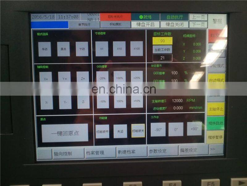 5.The rotary workbench can change the position among -90°、0° and +90° arbitrarily, one time clamping can finish milling for three sides.