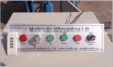 The 7LSJW Shandong SevenLift cheap portable automotive hydraulic wheelchair home outdoor elevator lift for disabled people is vertical lift platform for disabled people, suitable for indoor or outdoor, provides safe and convenient access in different level, includes access solutions for churches, schools or commercial sites etc. It is customized design for your real condition to install a convenient lift.