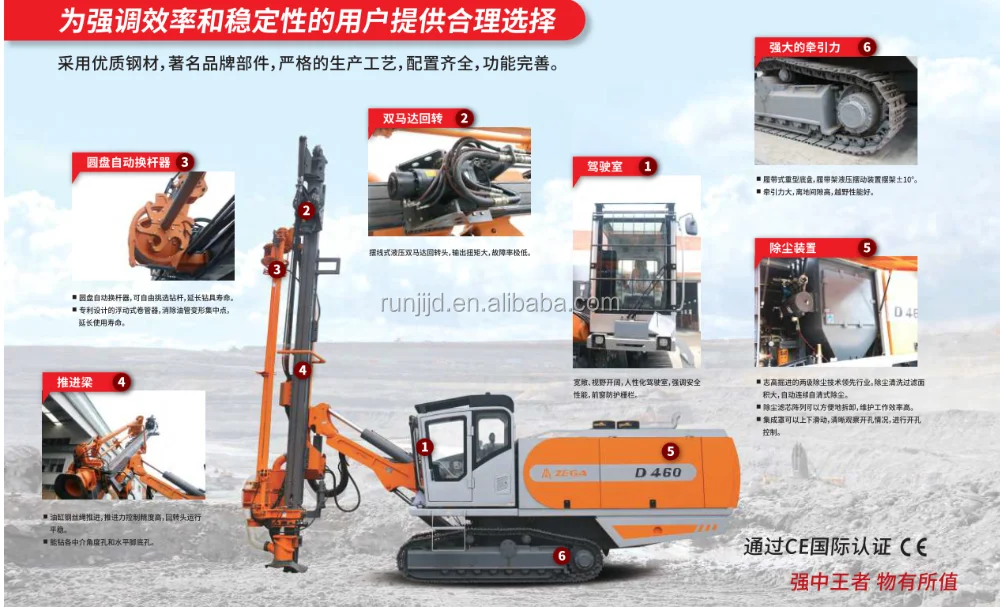 (3)Applications of ZEGA products: ①"ZEGA"drill rigs are for surface drilling,exploration, underground construction & mining, water well drilling, geothermal exploration, Construction Pit Anchorage, et