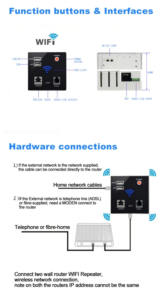 Connecting wire(The 220V wires, cables, telephone lines connected to the specified interface on the rear panel to ensure a firm connection,Connect the power off before connecting wires to connect 220V,Avoid electric shock).