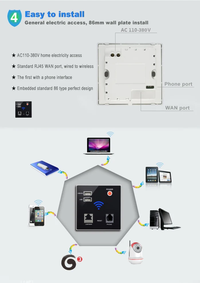 The A10 Series product is the latest generation wall plate WI-FI access point (AP) which can be installed in any 86mm wall plate without breaking the existing decorations and is easily managed. It is well suited to university dormitories, hospitals wards, hotel rooms and other sites with densely divided rooms. It helps mitigate signal quality problems caused by traditional AP deployment in such sites, and greatly reduces capital expense and operation expenses in running these sites.