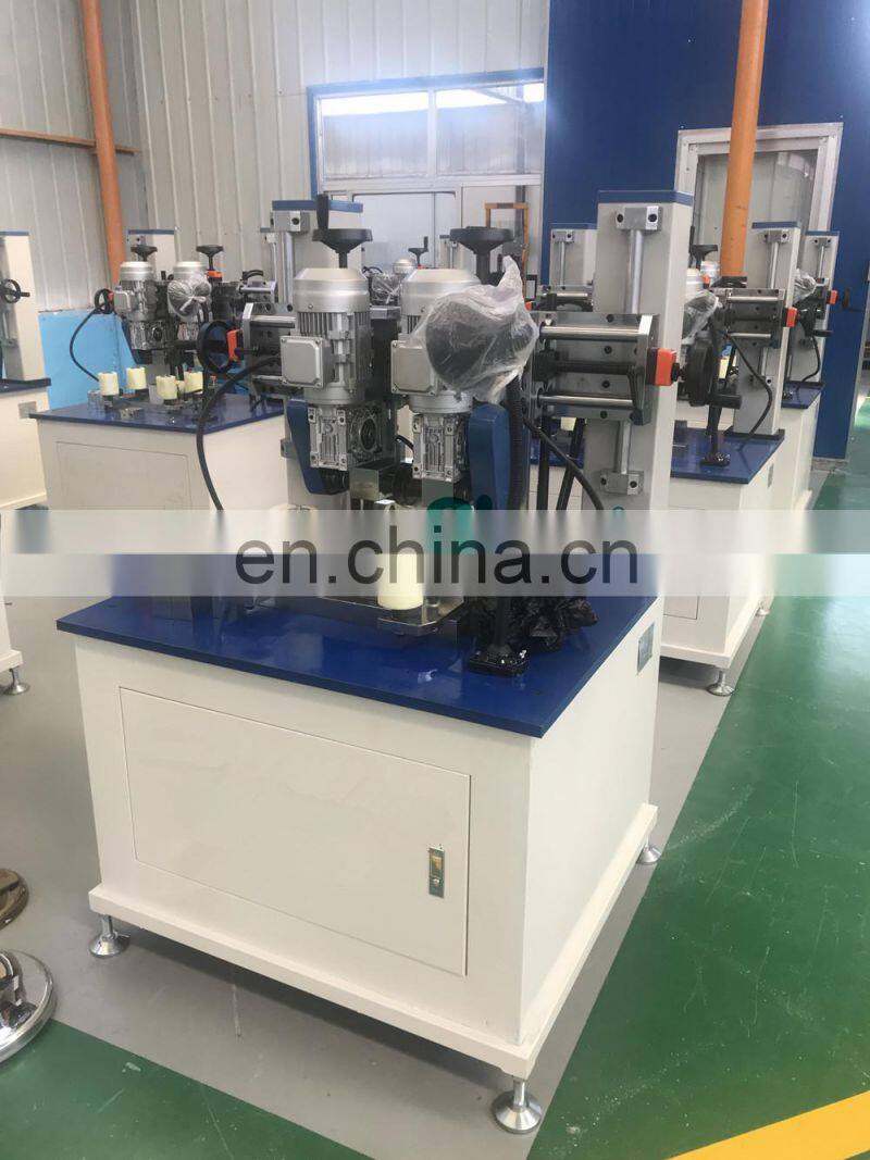 This machine is for knurling and inserting strip to make thermal broken aluminum profile.