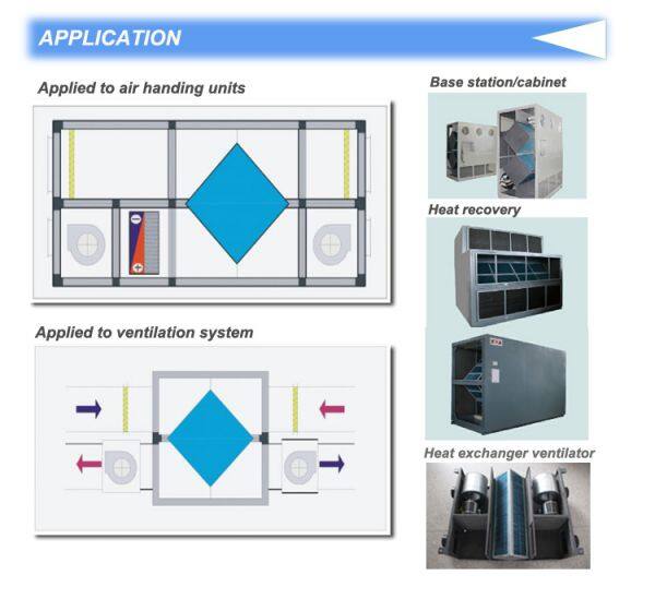 Air to air heat exchanger core are widely used for different industry air exchanger, heat recovery .cooling or heating and dehumidification. Such as in HAVC .Telecom, Power Supply, Textile Industry .Automobile, Food Industry,