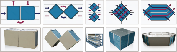 Base on different air channel, they can be divided into cross flow, counter flow and cross & counter flow; base on material can be divided into sensible and enthalpy heat exchanger core.