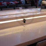 Eating sushi on the stone table will have a mellow feeling of taste. This is a feeling for food, creating a high-end store atmosphere. Stone has an eternal and unique appearance; the material itself has a personality and a high visual value; it is durable and can be re-polished after scratching. Artificial stone also has the advantages of economy, environmental protection, and true seamless integration.