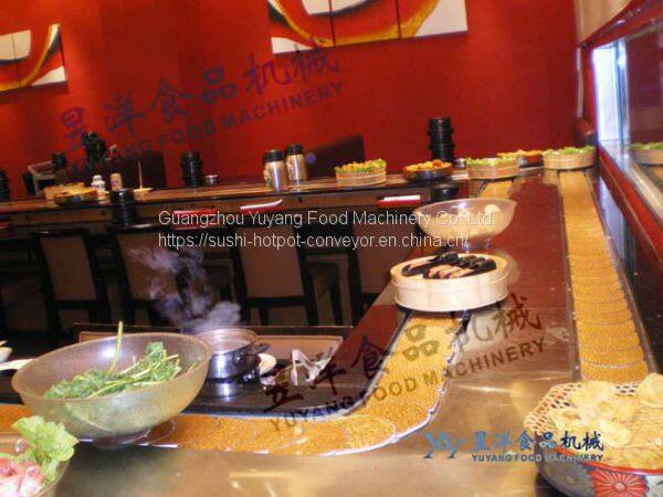 Home > Products > Hot Pot Conveyor > Buffet Equipment Customized Automatic Hot Pot Rotary Sushi Conveyor Belt System for Restaurant