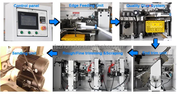ZK MACHINERY automatic edge bander is mainly used for the straight edge banding of MDF boards, solid wood boards and shaving boards. It very applies to the manufacturers who produce combined wood type furniture.