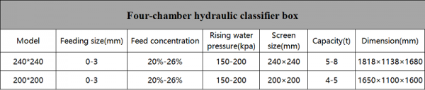 It is widely used in the hydraulic shaker before sorting grading operations, classification and distribution of mine to play the role of quantity in order to improve the sorting efficiency of shaking. Hydraulic classification box has a simple structure, easy maintenance, do not consume power, reliable performance, easy to operate, de-mud and so on ease of operation.