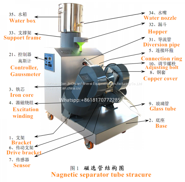 XCGS 50 magnetic tube lies between the two ends of electromagnet, It is equipped with glass tube to reciprocate and swing. when the sorted samples pass the magnetic field, the magnetic parts get close to the tube wall. the non magnetic parts are discharged after washed away by water during mechanical movement.