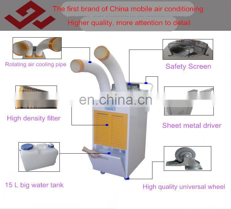We specially developed this portable air cooler/air conditioner for industrial ways, be able to lower temperature for indoor and outdoor to creat a cooling environment. Design with portable mobile wheels, easy to move to anywhere. Also with 15Liters big water tank and adjustable air outlet.