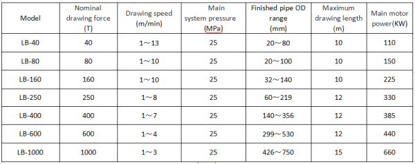 LB hydraulic cold drawing machine: Cold drawing machine as the main processing equipment of cold drawing steel pipe. It is used for drawing black and non-ferrous metal bar materials at normal temperature and for secondary processing of steel pipes after hot rolling and extrusion.