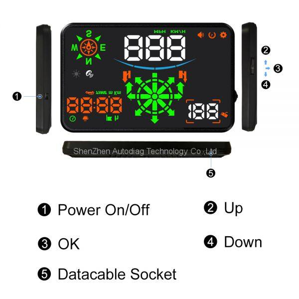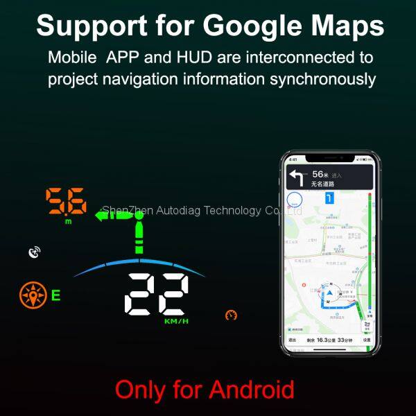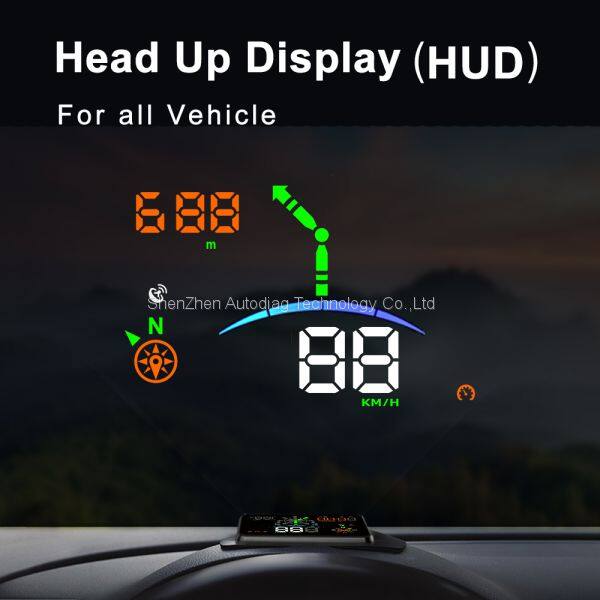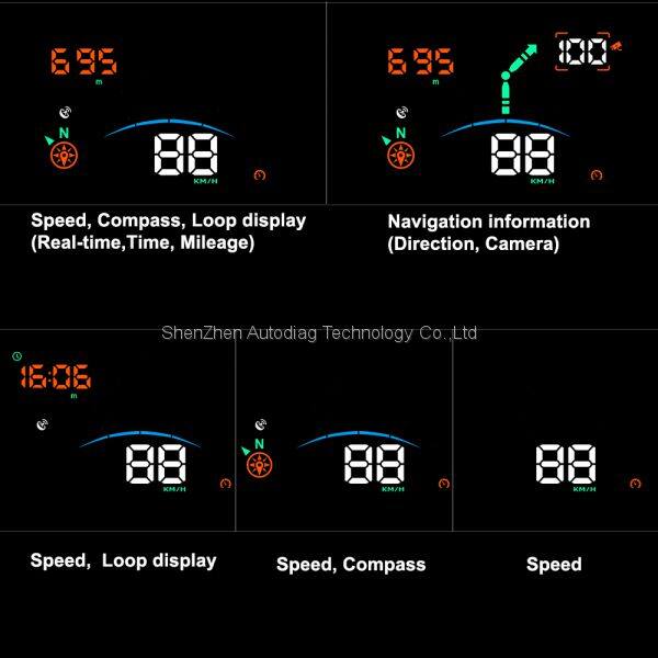 l Powered by the cigarette lighter of the vehicle, receiving GPS signals, obtaining information such as speed and compass, and projecting and displaying them on the front windshield of the vehicle, greatly improving driving safety. The display brightness of the HUD is automatically adjusted according to the real-time environment. It is bright during the day and gentle at night.