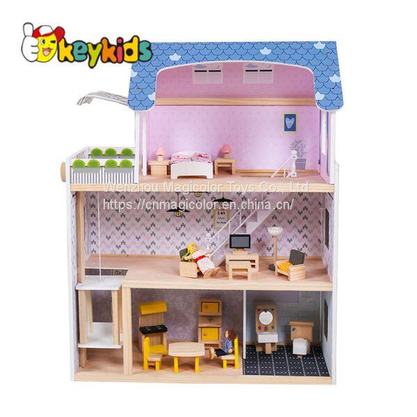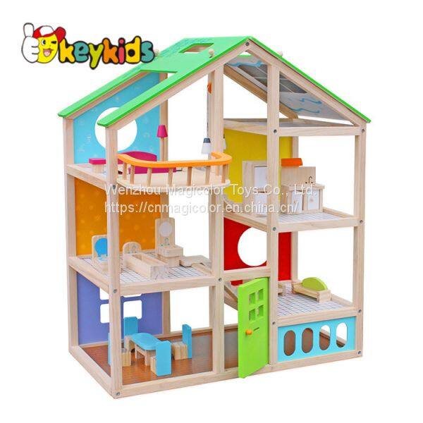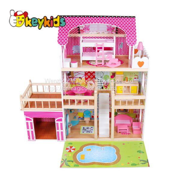 2019 Original Design children pretend play wooden mansion dollhouse with multicolor W06A358B
