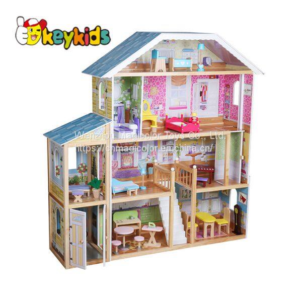 2019 Original Design Children Pretend Play Wooden Mansion Dollhouse With Multicolor W06A358B