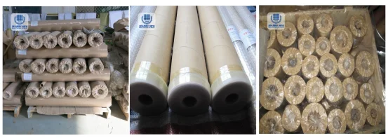 Then wrapped with "plastic film" as well as the "woven bag" on the finished roll