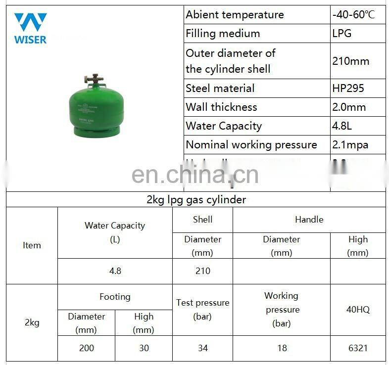 Certification for 2kg gas stove camping gas cylinder for sale cooking portable BBQ outdoor use