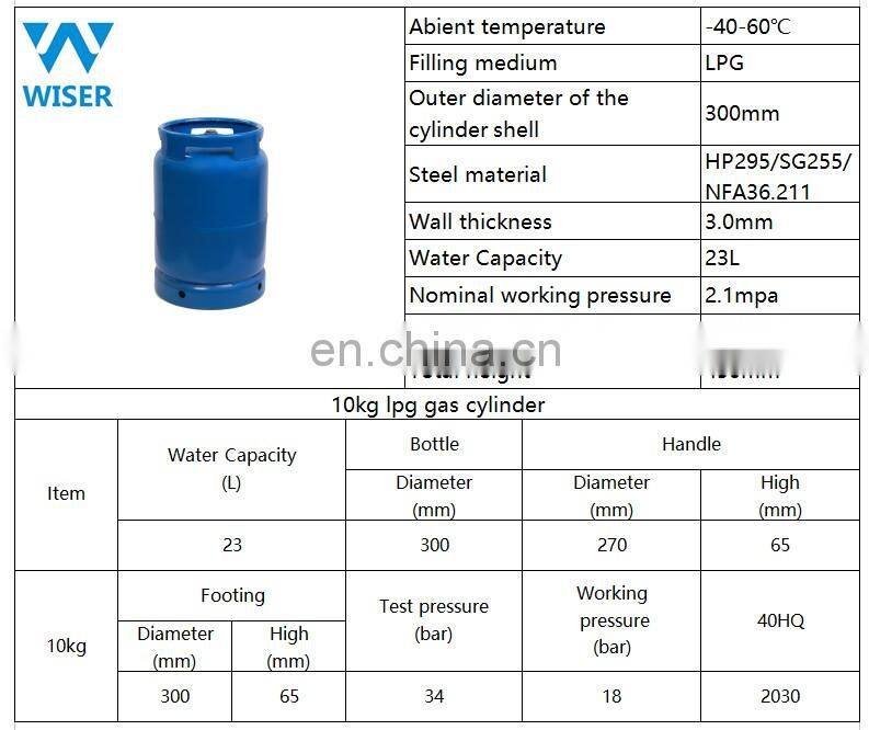 Factory direct supply 10kg gas cylinder price in turkey durable for use