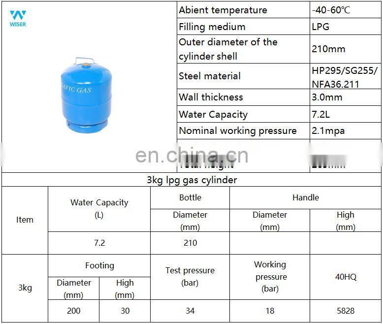 Product name:DOT CE ISO4706 3kg 7.2L empty lpg/propane/butane gas cylinder/tank/bottle Africa for cooking camping BBQ kitchen