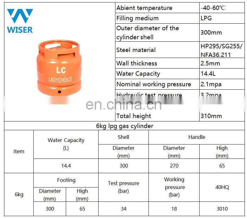 Product name:Factory direct 6kg lpg gas cylinder india price with high standard